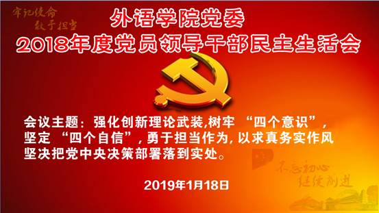 1月18日上午,学院党委在博文楼312会议室召开2018年领导干部民主生活会。校党委常委、副校长肖江南,学校第九督导组组长、校纪委副处级纪检员韩世教,校党委组织员沈立新到会全程督导。会议由院长卞建华主持。学院党委副书记牟晓燕、副院长宫英瑞,党委委员陈黎、扈炳良参加,院长助理布占廷列席会议。