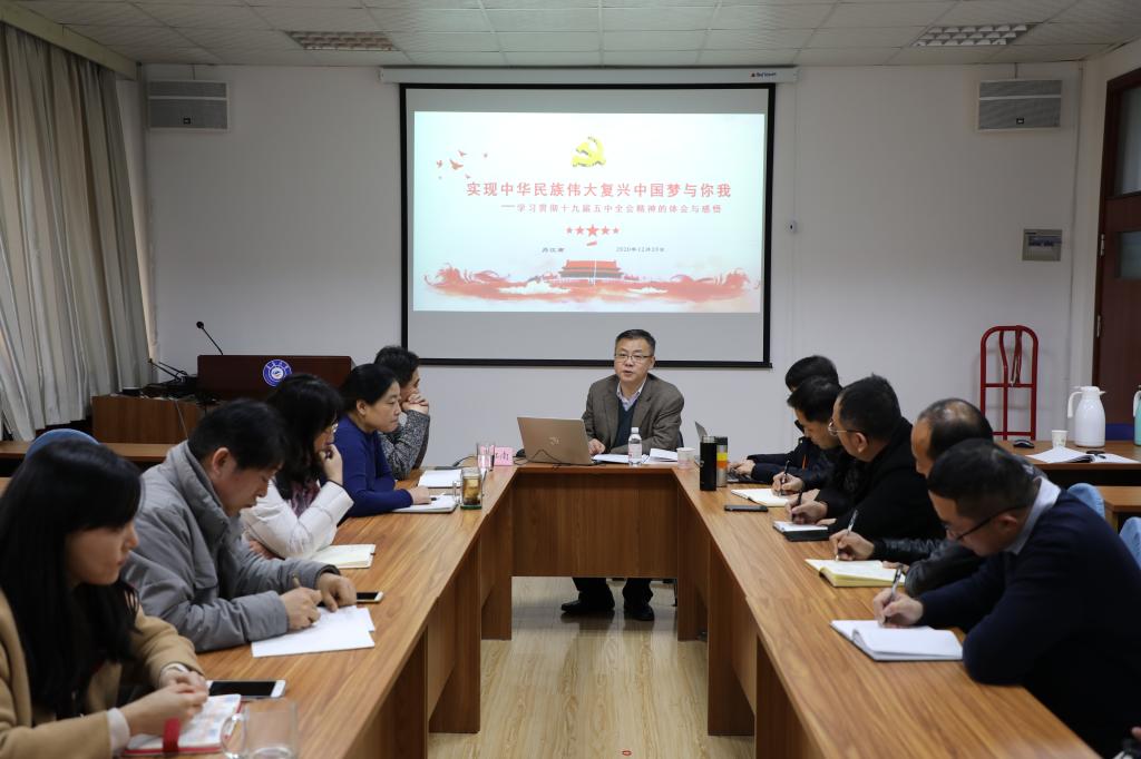 2020年12月24日下午,KY开元集团官网党委在博文楼312会议室举行理论学习中心组(扩大)学习会,校党委常委、副校长肖江南参加学习并作十九届五中全会精神宣讲报告。院领导班子、各系主任、支部书记参加学习,会议由院党委书记王传永主持。