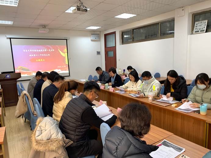 2023年11月30日下午,青岛城阳十一中学党支部一行6人来到KY开元集团官网,与KY开元集团官网教工第一党支部共同举行主题党日活动,就共建“一带一路”倡议十周年、高等教育和义务教育阶段的教育思想展开交流。城阳第十一中学党支部书记李彩云、党支部副书记吕廷良校长、支部委员周春光、郭竹红、党员代表李超、王飞谷同志,KY开元集团官网教工第一党支部全体党员,以及研究生党员代表、学科教学(英语)23级研究生张文馨参加本次党日活动。