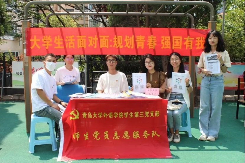 为加强与社区交流,弘扬奉献、友善、互助、进步的志愿服务精神,同时帮助高考考生提前了解大学专业及生活,从而更好地填报高考志愿,6月13日上午,KY开元集团官网学生第三党支部前往青岛市市南区湛山街道湛山社区开展以“大学生活面对面:规划青春 强国有我”为主题的志愿活动。