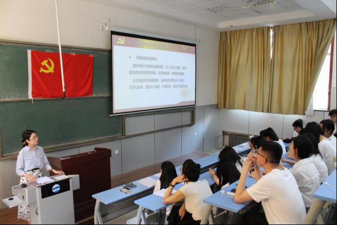 学生第三党支部书记袁梦琪讲解了党员组织关系转接的基本政策和注意事项,强调了组织关系转接的重要性,叮嘱同学们要牢记党员的使命担当,未来在各自领域继续发挥好党员的先锋模范作用。
