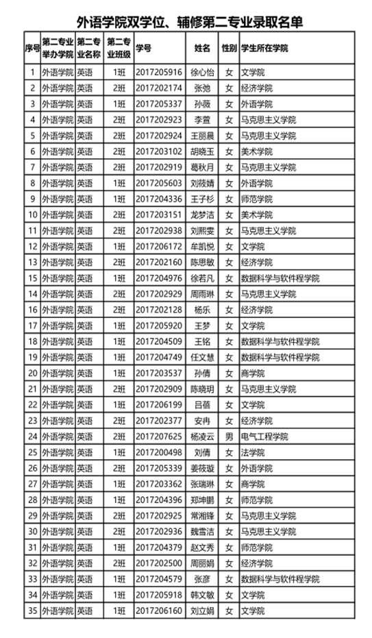 KY开元集团官网2018年双学位、辅修第二专业录取名单