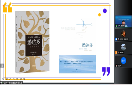 陈教授首先以赫尔曼·黑塞的生平经历为切入点,结合黑塞青年和暮年时期的照片,展现了一个生动而立体的作者形象。陈教授认为,黑塞一生都在书写自己人生的故事,表达自己的感受和思考。经过不断的发展,黑塞的中后期作品尤其注重辩证思考,倡导辩证看待世界,接纳世界的好与坏。陈教授分析了黑塞的辩证思想,使听众对这一概念有了更为深入的理解。