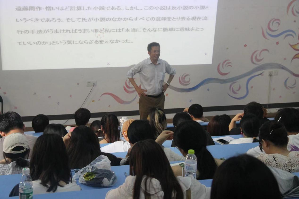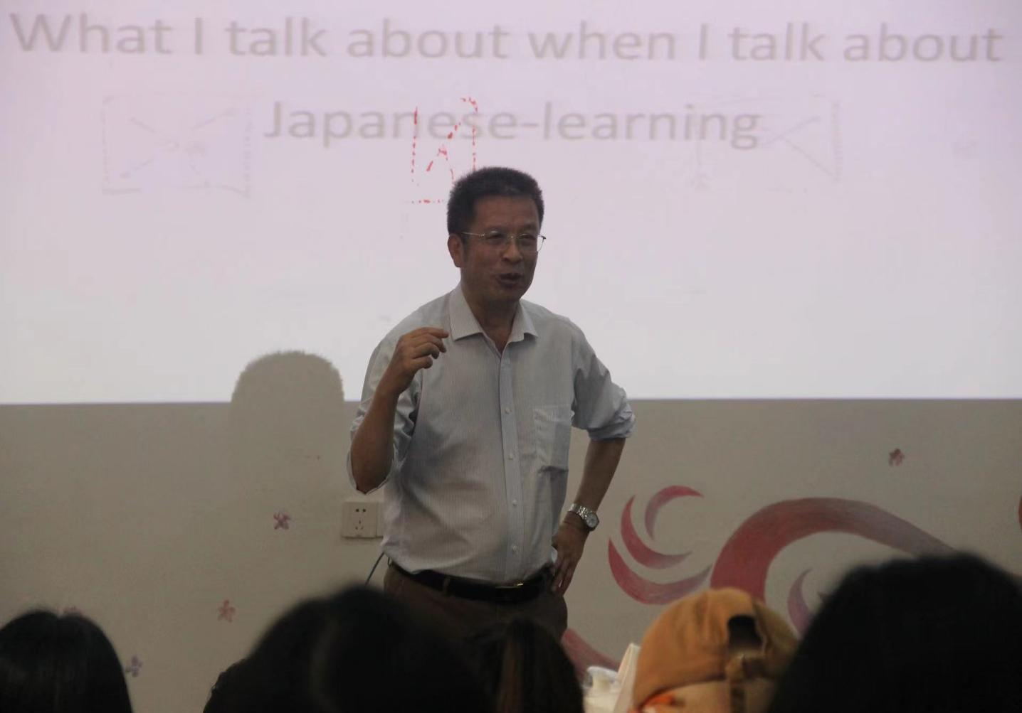 程老师表示:英语学习对大家很重要。日语中很多外来语都需要同学们对英语单词的积累和背诵。程老师分享了自己在日语学习中的一些心得体会,在讲述过程中不时结合自己遇到的真实案例,其幽默风趣的方式使同学们听得津津有味,同时又能发人深思。