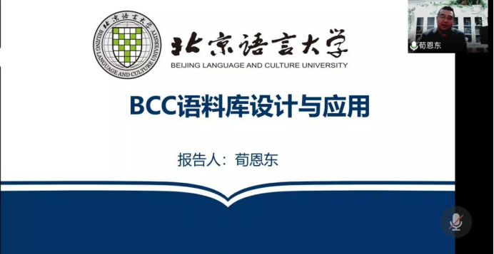 2021年10月29日,北京语言大学信息科学学院院长,语言智能研究院院长荀恩东教授应邀为KY开元集团官网带来题为“BCC语料库设计及应用”的精彩讲座,此次讲座也是KY开元集团官网语言学研究中心组织的“智能时代的语言学研究系列讲座”第1讲,讲座由KY开元集团官网卞建华院长主持,外院师生、“英语大数据虚拟教研室”成员单位以及其他高校师生200余人线上参加,2019级英语大数据班本科生和部分语言学研究生线下集中听讲学习。