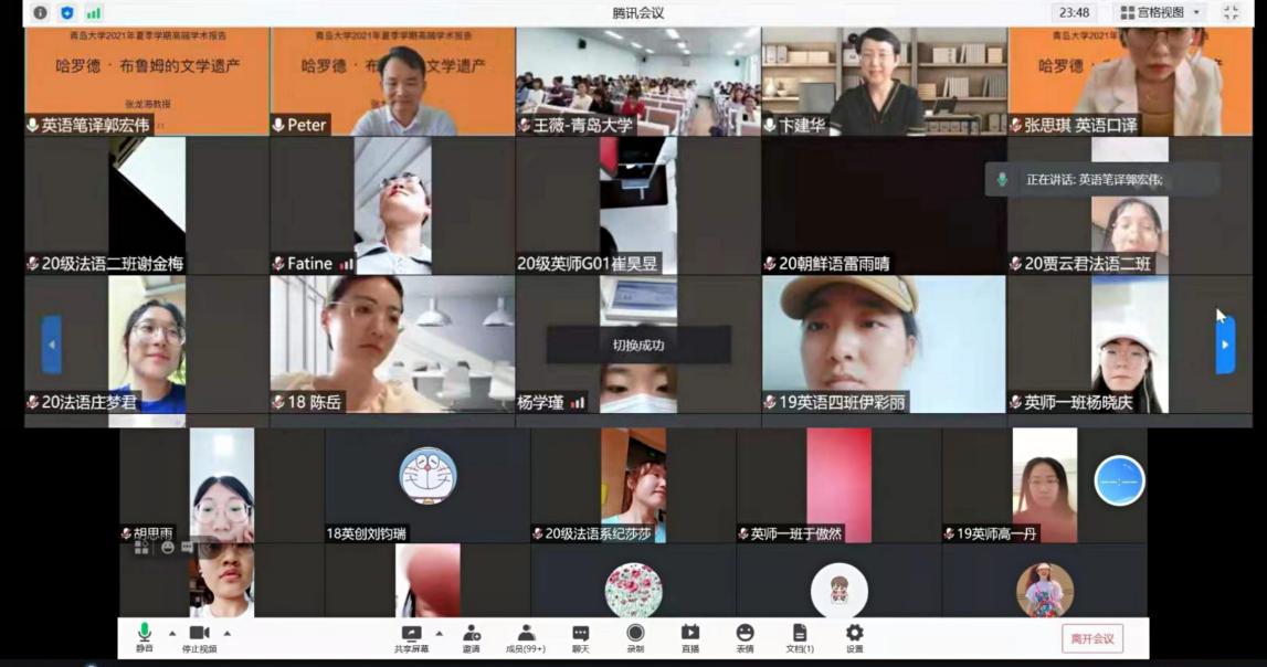 2021年7月13日下午,闽南师范大学副校长张龙海教授为KY开元集团官网师生做了题为“哈罗德·布鲁姆的文学遗产”的线上讲座。讲座由副院长宫英瑞教授主持,讲座开始,院长卞建华教授对张教授及此次讲座进行了介绍,三百多位师生线上线下同时参会。