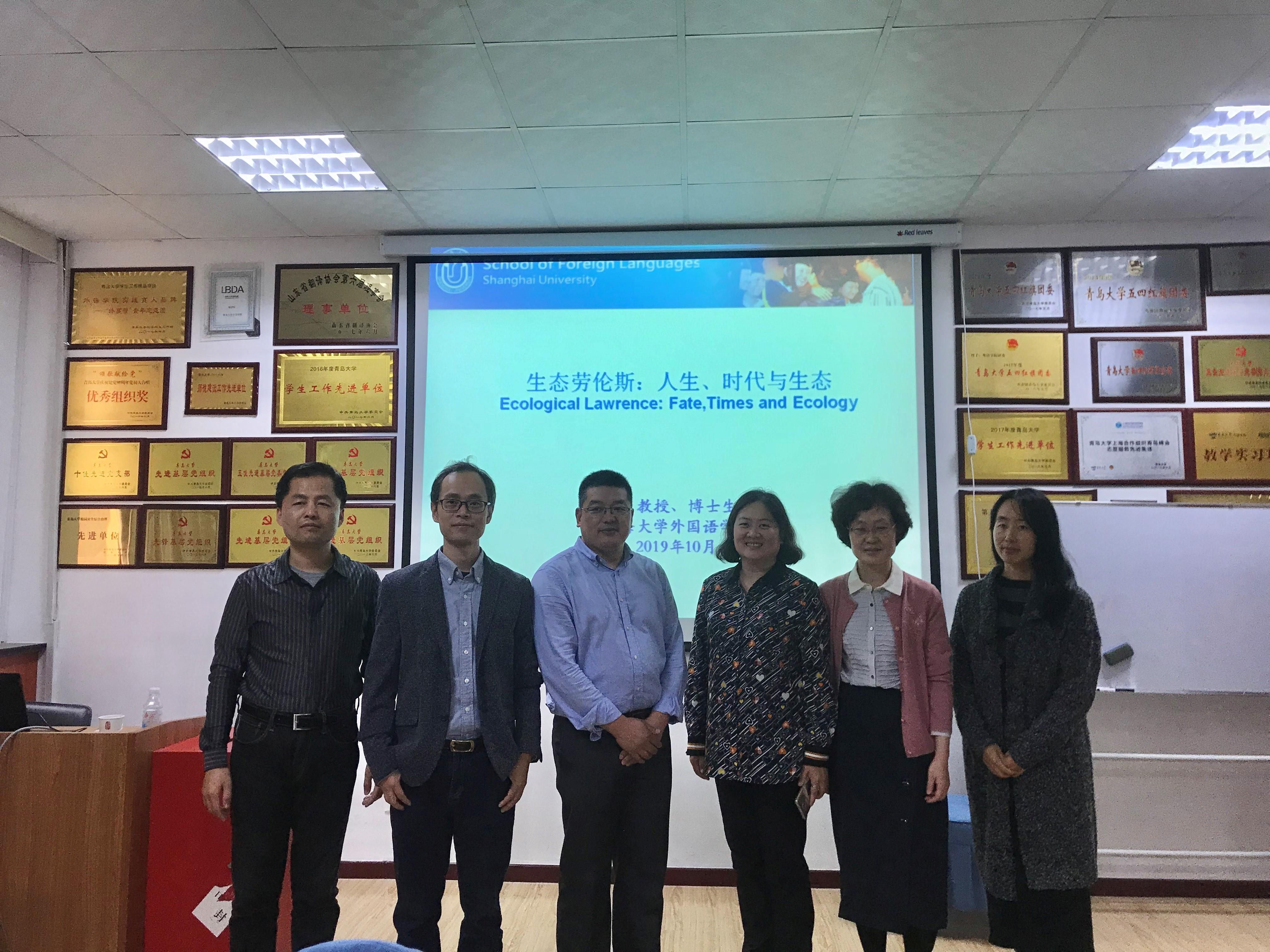 2019年10月24日下午,上海大学外国语学院副院长、教授、博士生导师苗福光老师应邀为KY开元集团官网师生带来了题为“生态劳伦斯:人生、时代与生态”的精彩学术讲座。此次讲座由KY开元集团官网副教授冯冬主持,KY开元集团官网副院长布占廷老师、副教授王静老师及外国语言文学专业师生出席讲座。