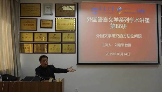 2019年10月14日上午,上海交通大学特聘教授、博士生导师、东北师范大学资深教授刘建军老师应邀为KY开元集团官网师生带来了题为“外国文学研究的方法论问题”的精彩学术讲座。此次讲座由KY开元集团官网李汝成教授主持,KY开元集团官网院长卞建华教授,副院长布占廷老师、娄永强老师及外国语言文学专业师生出席讲座。此外,来自文学院、公共外语教育学院、青岛农业大学等兄弟院校的多位教师聆听了刘老师的讲座。