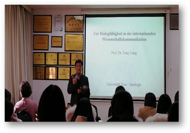 2月26日下午,KY开元集团官网在博文楼312会议室举行“外国语言文学系列学术讲座”第62、63讲。德国特里尔大学汉学系主任梁镛教授应邀为外院师生做了两场题为“国际交流中的跨文化对话能力”以及“中德跨文化交流中的新现象与新思路”的专题学术讲座。德语系主任綦甲福教授主持,学院部分老师及同学参加了此次讲座。
