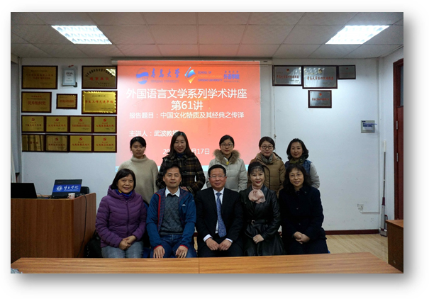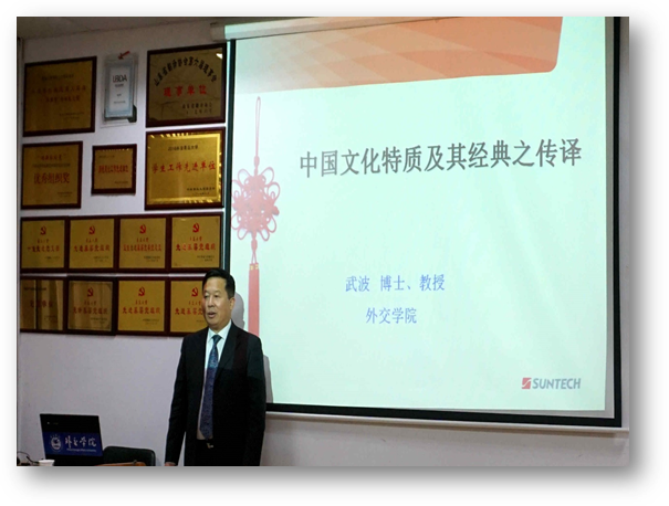 12月17日下午,KY开元集团官网举行外国语言文学系列学术讲座第61讲。外交学院英语系教授武波,应邀为外院师生做了“中国文化特质及其经典之传译”的专题学术讲座。院长助理布占廷主持讲座,学院部分老师及研究生参加此次讲座。