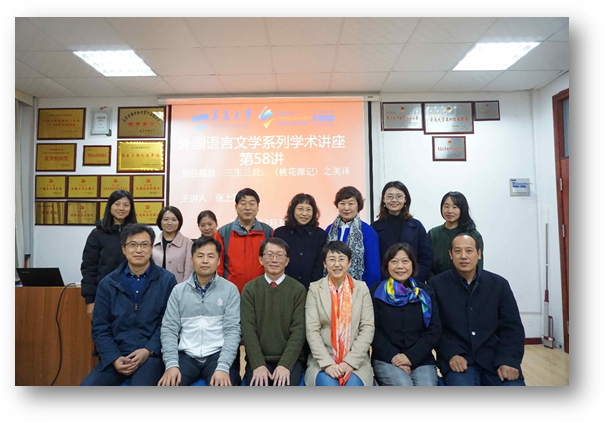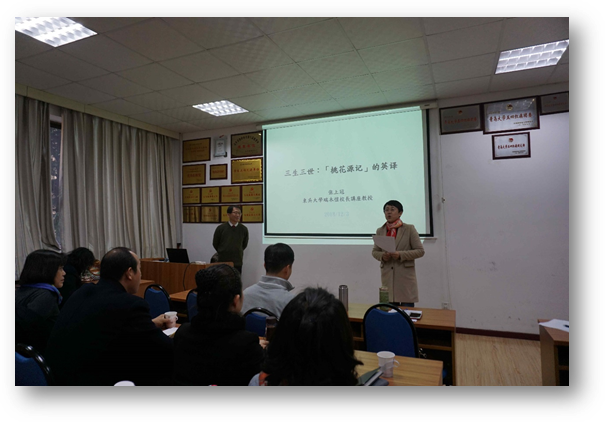 12月3日下午,KY开元集团官网在博文楼312会议室举行“外国语言文学系列学术讲座”第58讲。翻译理论及文化研究著名台湾学者张上冠教授应邀作“三生三世:《桃花源记》之英译”的专题学术讲座。院长卞建华主持讲座,学院部分老师及研究生参加此次讲座。