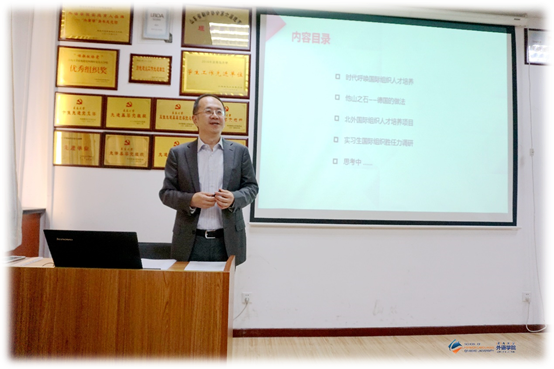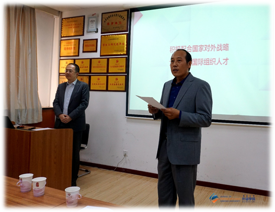 10月12日下午,北京外国语大学贾文键教授应KY开元集团官网邀请,做客外国语言文学系列学术讲座第51讲,在博文楼312会议室作题为“积极配合国家对外战略,大力培养国际组织人才”的学术讲座。讲座由德语系系主任綦甲福教授主持,学院60余名师生聆听了讲座。