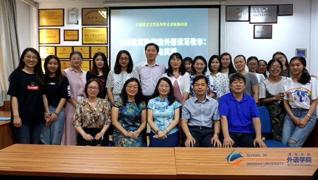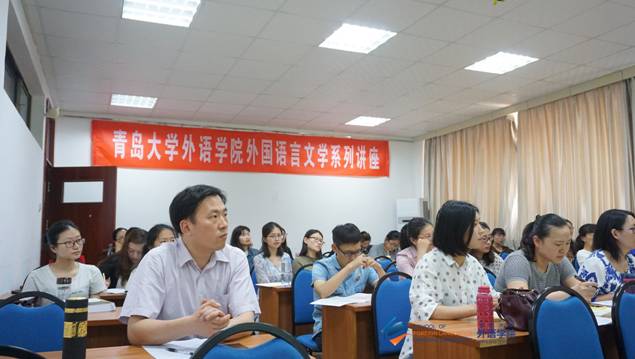 6月21日上午,北京外国语大学国际教育学院的杨鲁新教授做客外国语言文学系列学术讲座,并作题为“基础教育阶段的外语读写教学:理念与实践”的学术报告。院长助理布占廷主持,KY开元集团官网师生以及青岛市部分中小学教师代表参加讲座。