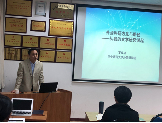 4月19日,华中师范大学罗良功教授应学院邀请,在博文楼312教室为KY开元集团官网师生做了题为《外语科研方法与路径——从我的文学研究说起》专题学术讲座。
