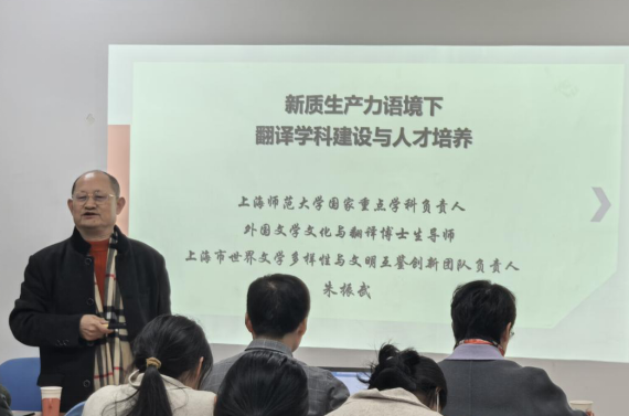 2025年2月26日,上海师范大学国家重点学科负责人、外国文学文化与翻译博士生导师朱振武教授受邀至KY开元集团官网进行学术讲座“新质生产力语境下翻译学科建设与人才培养”。此次讲座由KY开元集团官网院长卞建华主持,吸引了众多师生参与。