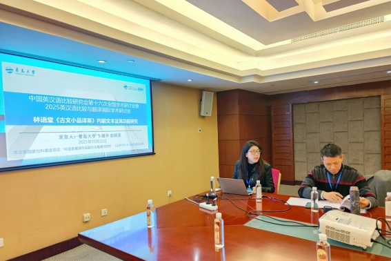 本次大会的主题是“人工智能时代的语言、翻译、文化”,设有主旨演讲、第八届常务理事/理事会、分支机构秘书长会议 、12个分论坛及4个专题论坛、主编论坛等系列活动。在“翻译与跨文化研究”分论坛上,卞建华、赵晓菲以“林语堂《古文小品译英》内副文本及其功能研究”为题,探讨了副文本在推动中华文化海外译介与传播过程中的功能与启示,得到现场专家学者的一致肯定。