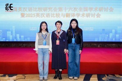 “中国英汉语比较研究会第十六次全国学术研讨会暨2025英汉语比较与翻译学术研讨会”由中国英汉语比较研究会主办,全国新文科教育研究中心、山东大学外国语学院承办。不同研究领域的学者在英汉语言对比、翻译研究及中西文化对比三大板块之下,共同探讨外语学科的时代新使命以及新文科背景下外语学科的交叉融合与实践创新。KY开元集团官网师生积极参与此次学术研讨会,同与会专家学者深入交流最新研究进展,并与KY开元集团官网2022届校友、上海大学在读博士贾楠同学见面交流,积极宣传了KY开元集团官网教学与研究成果。