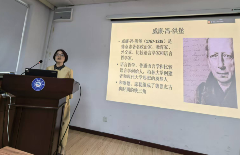 10月20日下午,KY开元集团官网在博文楼312会议室举办外国语言文学系列学术讲座第195讲“朴素与忠实:洪堡的翻译思想”。本次讲座由同济大学赵劲教授主讲,德语系主任綦甲福教授主持。活动由KY开元集团官网和中德文化交流研究中心、教育部德语翻译课程虚拟教研室共同主办,德语系和歌德语言中心承办,山东省与德国交流合作研究中心、巴伐利亚研究中心协办。德语系教师和硕士研究生及本科生聆听讲座。