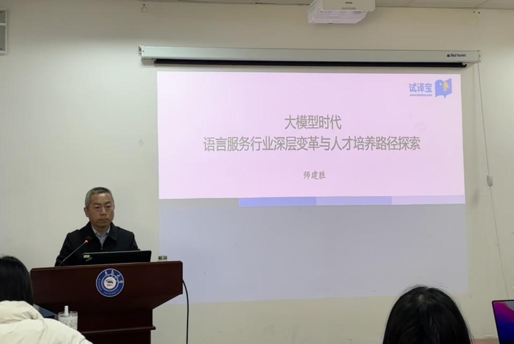 12月21日下午,师建胜老师通过“大模型时代下语言服务行业深层变革与人才培养路径探索”的核心主题,具体生动地阐释如今的大模型应用和未来面对的挑战。明确指出未来5——10年人机共生的时代下,重点关注的智能领域和新技术场景培育的主要方式,同时阐明人工智能和大模型的技术要点与能力,从“token 化”到推理指令模型,系统归纳大模型操作流程和基本框架,让同学们对前沿技术有更加深入的学习和思考。同学们通过与师老师的交流互动,更明确了从哪些方面,可以用AI促进语言服务从业者的角色重塑和能力再造,让同学们受益匪浅。