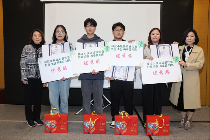 本次比赛吸引了来自KY开元集团官网、山东大学、山东科技大学等多所高校的选手参加。比赛分为初赛和决赛,初赛中选手围绕韩江的小说作品撰写韩国语读后感,考察文学分析和理解能力,决赛为晋级选手到现场用韩国语进行读后感发表,并回答评委提问,考察口语表达能力和文学分析能力。经过激烈角逐,KY开元集团官网朝鲜语口译2024级研究生尹丽虹、朝鲜语笔译2024级研究生王兆瑞在比赛中分获一等奖和优秀奖,指导教师分别为崔花和杨昊。