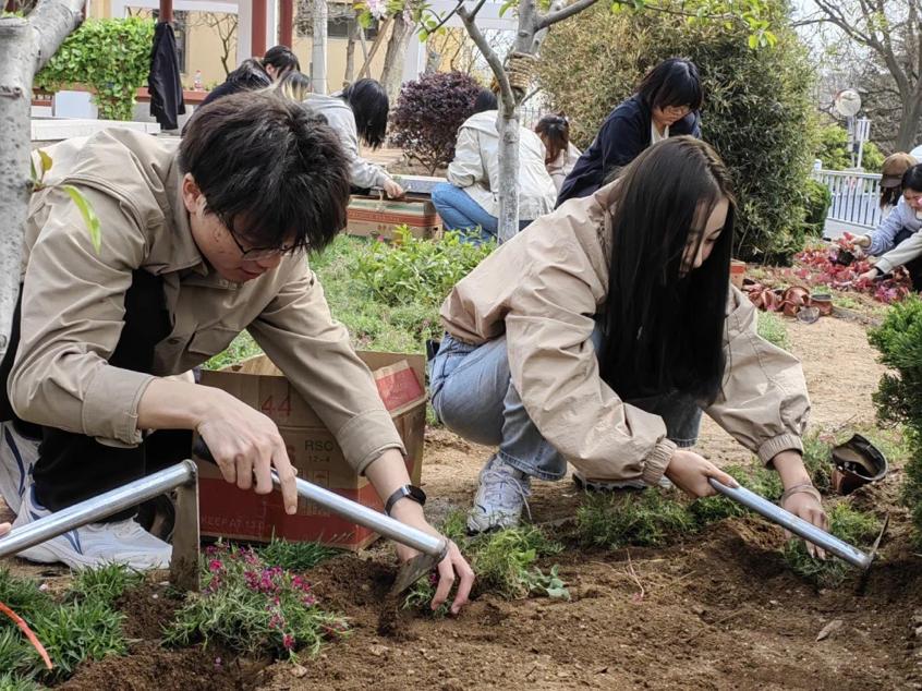 四月青草合,胶澳春水生。在这个生机盎然的仲春时节,为了进一步美化校园环境、提高师生的环保意识,KY开元集团官网在党委副书记王海青、辅导员刘浩的带领下,于4月19日在浮山校区校园内组织开展了春季栽花种草活动。本次活动得到了广大师生的积极响应和热情参与,共培绿植百余株,为韶园增添了一片新绿。
