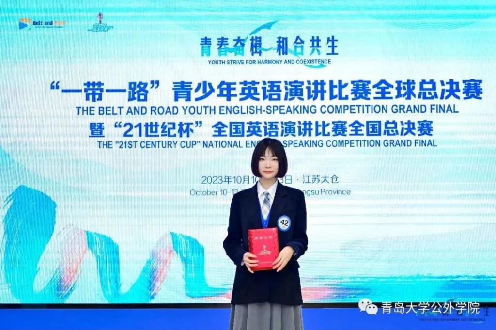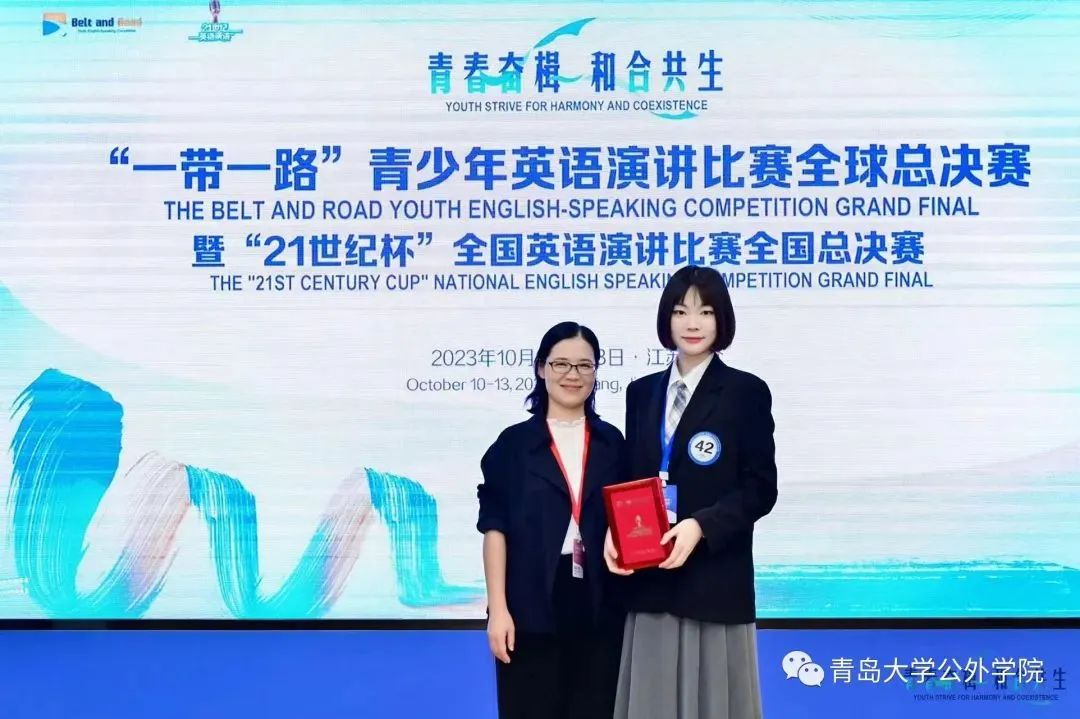 2023年10月11日至13日,第28届“21世纪杯”全国英语演讲比赛全国总决赛在江苏太仓举行。KY开元集团官网德语专业学生王筱彤荣获全国总决赛二等奖,公共外语教育学院教师孙亚楠获得优秀指导教师奖。