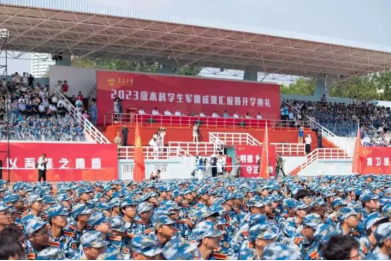 烈日长空着戎装,热血沸腾凌云志。2023年9月17日上午,我校2023级学生军训汇报表演在KY开元集团官网浮山校区西院田径场隆重举行。23级新生接受了校领导的检阅。至此,23级学生为期两周的军训生活圆满结束。