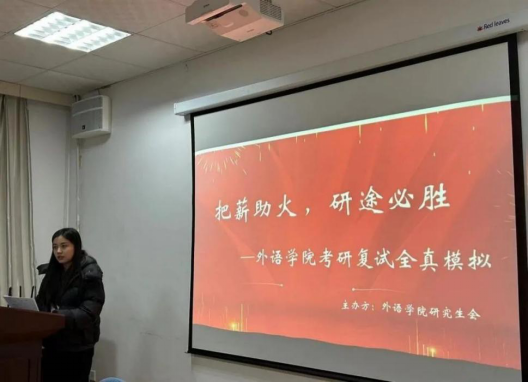 此次模拟活动分为两个会场,分别设有候考室和复试室,模拟现场严格按照复试流程进行,学生首先进行自我介绍,再根据面试官的提问临场作答。
