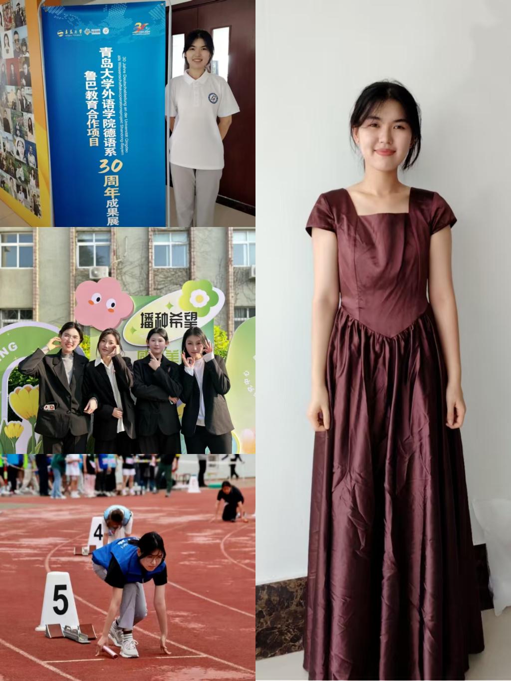 在学习之余,我同样注重德智体美劳全面发展。我积极参与志愿服务,曾担任2024级新生代理班主任,并作为志愿者参与了“外教社杯”全国高校学生跨文化能力大赛山东省赛、亚洲日耳曼学者大会等多项活动。此外,我曾担任学院外文短剧大赛的编剧与主演,参加过学校八段锦比赛、辩论赛和系庆合唱演出等诸多文体活动。这些经历不仅让我的大学生活充实且有意义,更锻炼了我的组织、沟通与协作等能力。