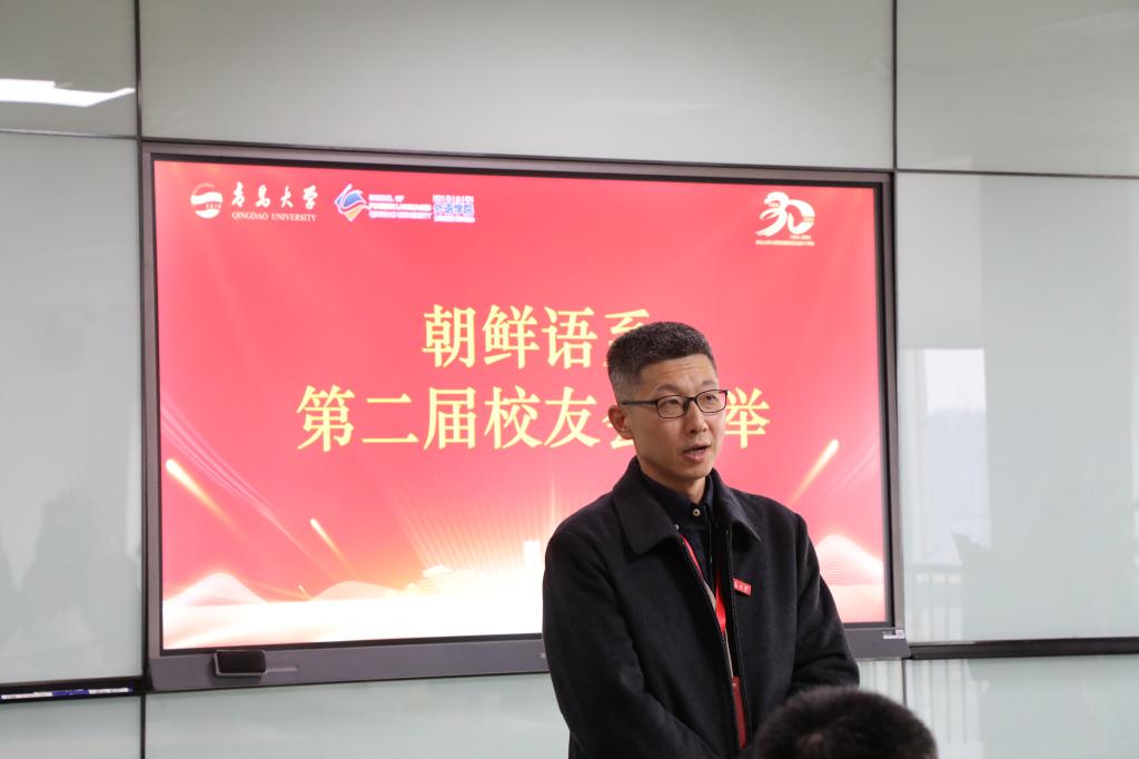 大会还举行了朝鲜语系第二届校友会换届仪式。系主任崔花宣读了新一届校友会成员名单,新任会长1998级刘东介绍新一届校友会,表示将积极搭建校友与母校之间的桥梁,凝聚校友力量,助力朝鲜语系高质量发展。