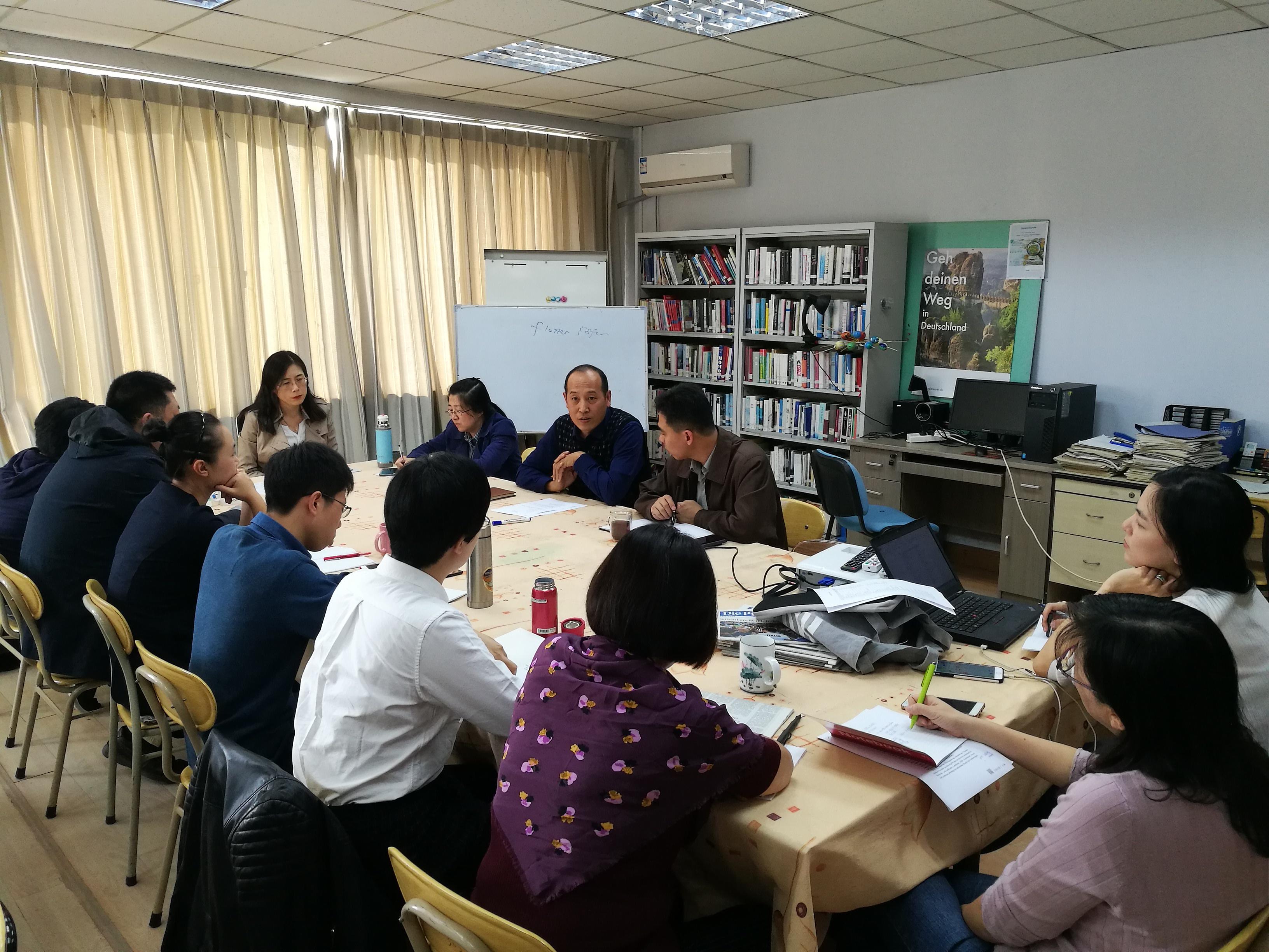 11月11日下午,KY开元集团官网德语系在博文楼502举行专业及课程建设研讨会,会议由系主任綦甲福教授主持,德语系全体教师参加,KY开元集团官网党委书记王传永全程出席并予以指导。