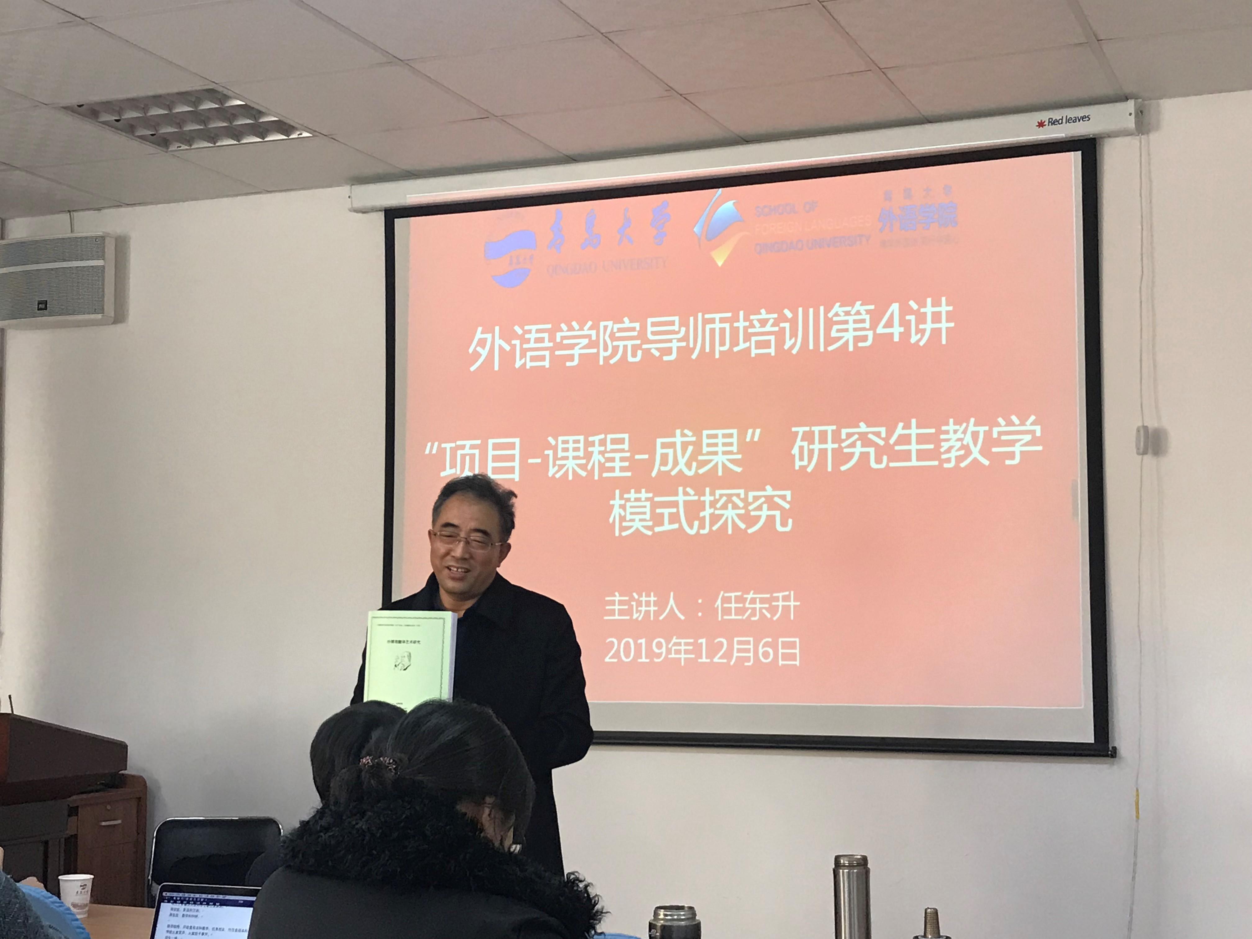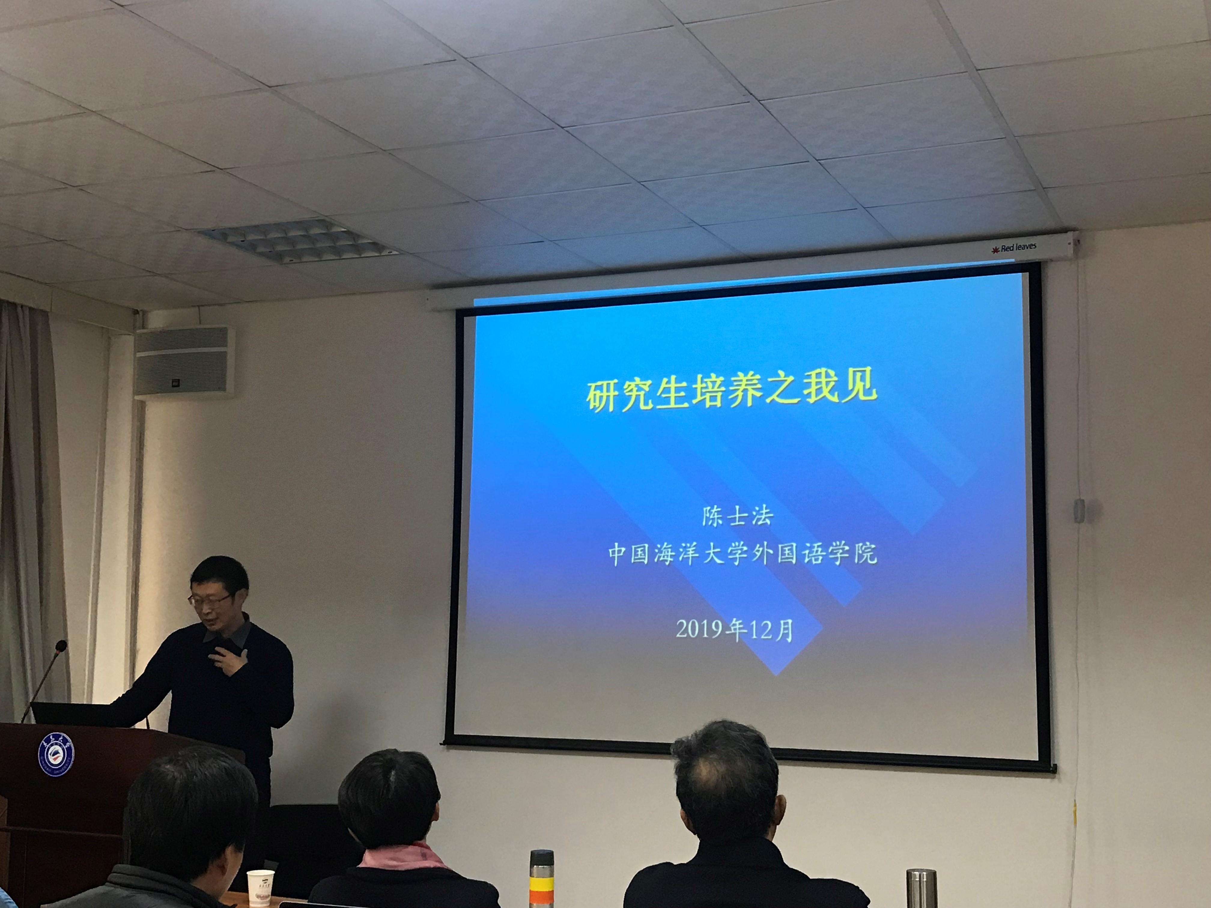 12月6日,KY开元集团官网在博文楼312会议室举行研究生导师培训会第四讲和第五讲。中国海洋大学外国语学院博士生导师任东升教授、陈士法教授应邀为老师们带来了精彩的培训讲座。KY开元集团官网研究生院丛海林院长、潘秋鸿副院长出席并讲话,KY开元集团官网卞建华院长主持会议,学院全体研究生导师参加了培训会。