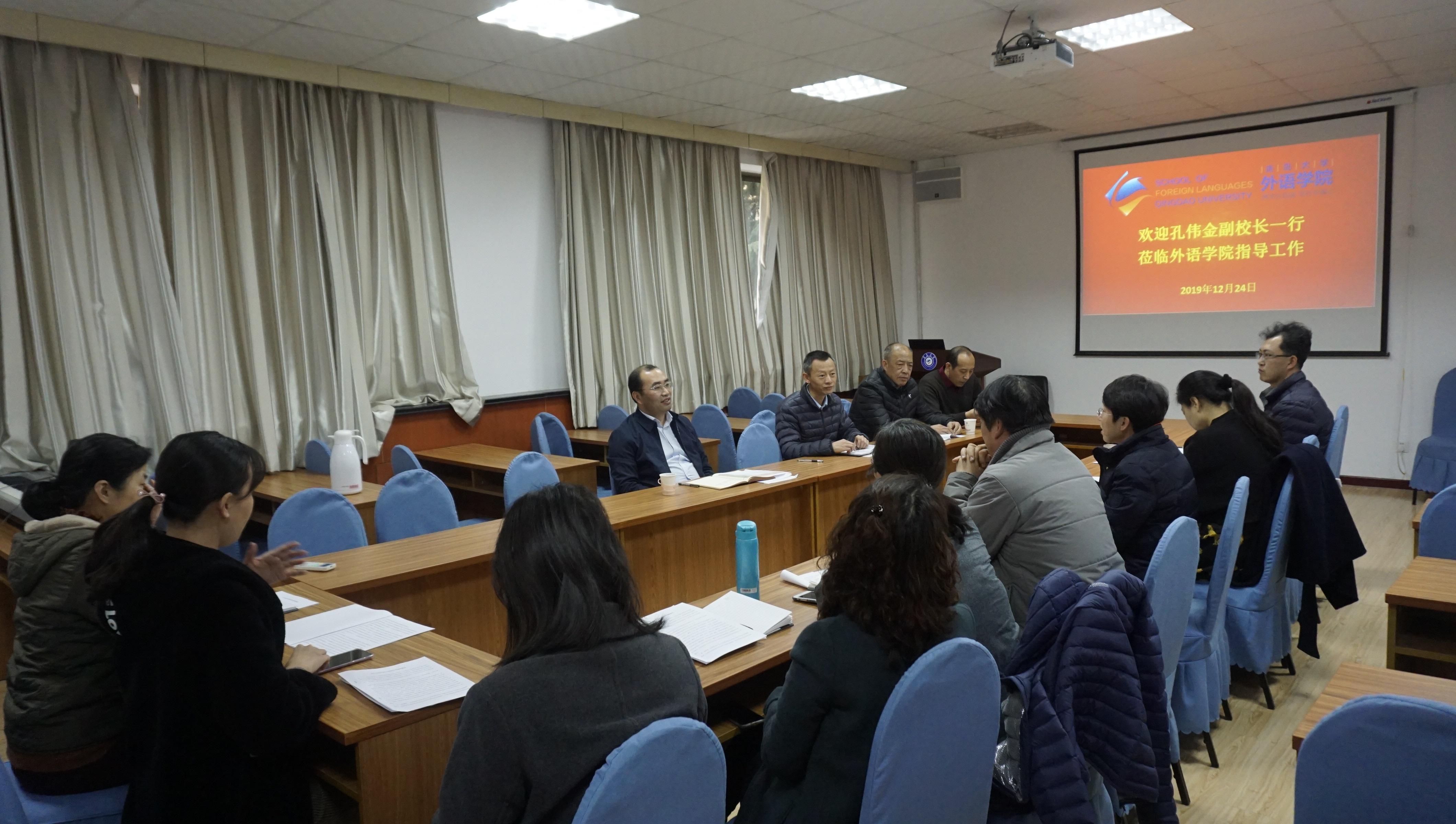 首先,KY开元集团官网院长卞建华代表外院感谢孔校长来学院调研指导并汇报了近期学院工作情况,接着副院长娄永强汇报了学院近期组织部分班子成员和系主任外出调研外语专业大类招生的情况,并结合学院各专业具体情况提出学院明年本科招生的设想。各位系主任也结合各专业特点各抒己见。