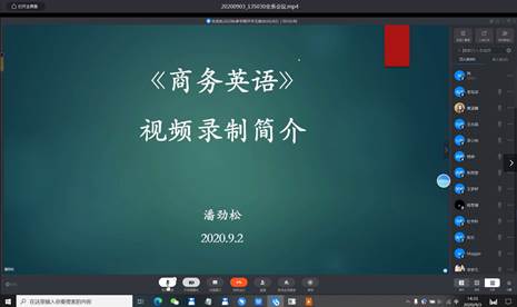 随后,潘劲松老师为大家带来了疫情期间在线课程建设的心得体会。潘老师表示,在受线上课程教学环境的限制下,教师们应注重多模态教学方式的推进,将音频、视频等多模态模式结合,充分利用线上教学条件,从而达到最好的传授效果。