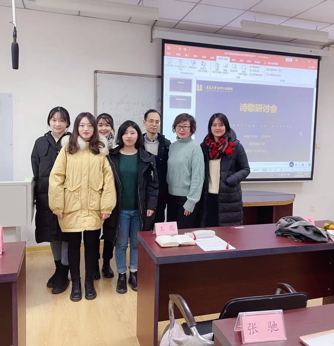 精彩纷呈的研讨会背后,其实是英语语言文学学科对于《英美诗歌研究》和《英国文学专题研究》等学位核心课程的用心筹划和精心设计。本学期开学之初,诗歌课程教学团队就曾多次围绕教学大纲、教学内容、课程考核等议题展开研讨,冯冬老师的《西方诗学》部分作为前半学期学习重点,后半学期王薇老师的《英美诗歌研究》部分重点结合2020年诺贝尔文学奖获得者、美国诗人露易丝·格吕克的诗歌文本细读,实践具体诗歌论文的写作。各门教学团队在教学中不但侧重对文学文本细读能力的培养,还尤其强调理论阐释能力的提高和文学批评功底的培养,使得学生在对英美文学作家作品进行解读时,能够以中国学者的视角辩证地看待问题,并以更开阔的视野审视文学研究中的新议题。