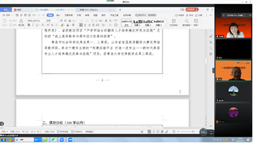 之后布占廷、徐丽娜、马一凡、段丽君、刘沁卉等申报课程负责老师分别汇报了申报材料中课程目标、课程建设及应用、课程特色与创新、课程建设计划等部分内容并提出自己的疑惑与问题,王教授对老师们的申报材料进行点评,对老师们的问题进行解答指导并提出改进建议。