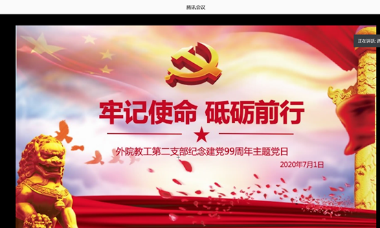 7月1日下午,KY开元集团官网教工第二党支部利用腾讯会议召开了牢记使命,砥砺前行——庆祝建党99周年主题党日”活动。活动由教工第二党支部书记崔花主持,二支部教师党员参加会议。与会党员结合疫情期间自身感受表达了对建党99周年的祝福。