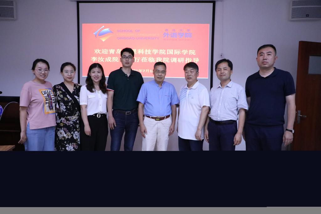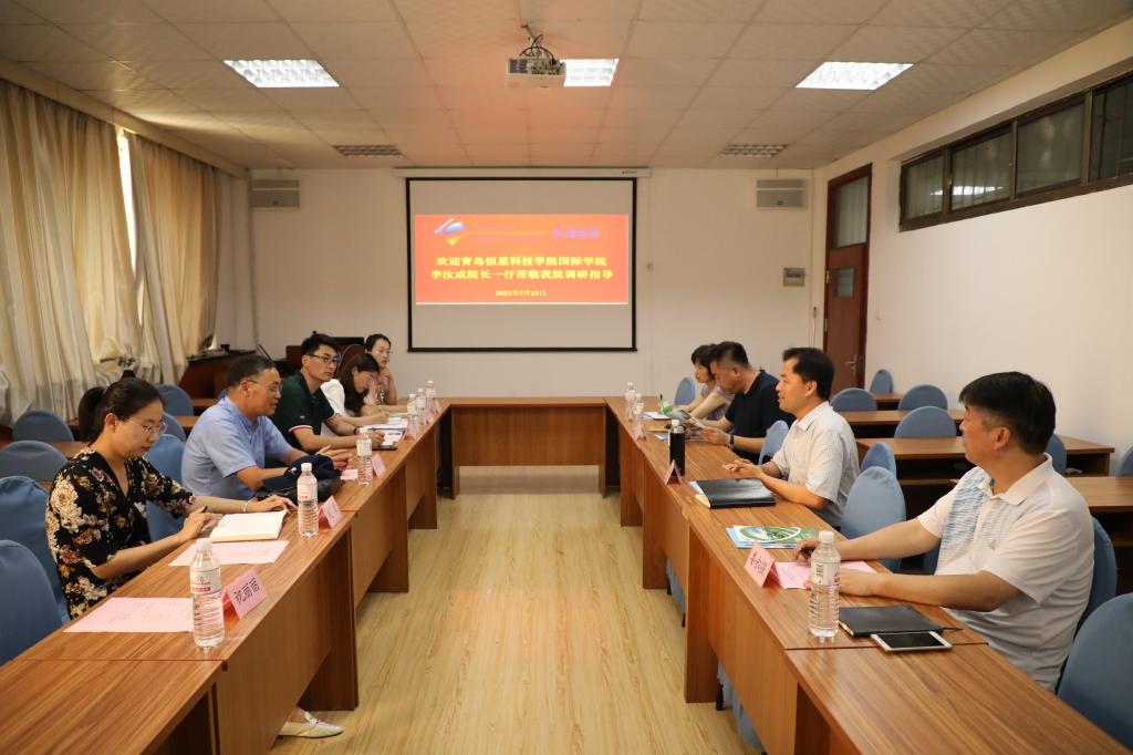7月12日下午,青岛恒星科技学院国际学院院长李汝成教授一行来KY开元集团官网进行工作调研。KY开元集团官网副院长布占廷、娄永强,朝鲜语系副主任杨昊和本科教学办主任李兰参加调研交流。