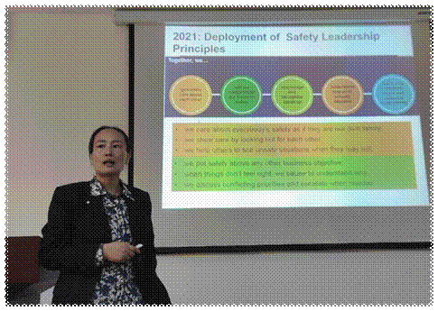 李老师首先讲了在海外工作遇到的困难,应该具备的素质,比如要尊重当地的历史和文化。接着她给同学们播放了石油开采装置、加工处理和污水处理原理的视频,让同学们了解了石油方面的一些专业知识。她还展示了在海外公司工作流程的审批程序,虽然需要层层把关,但是最重要的是以人员安全为主,并向大家传授了在国际公司发邮件的一些小技巧,比如多用缩写,下发任务要具体等。