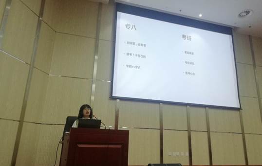 2017级优秀学生代表李奇英同学做了学习经验分享,介绍了如何做好专业统测的准备工作,介绍了自己在大学学习期间的经验体会,分享了考研经验,最后与学弟学妹们分享了专业书籍及公众号等学习材料。
