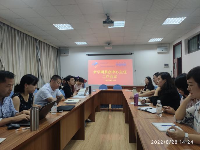 8月28日下午,KY开元集团官网在博文楼312召开新学期系办中心主任工作会议,随后在博文楼217召开全院教职工大会,会议由院党委书记周伟主持。