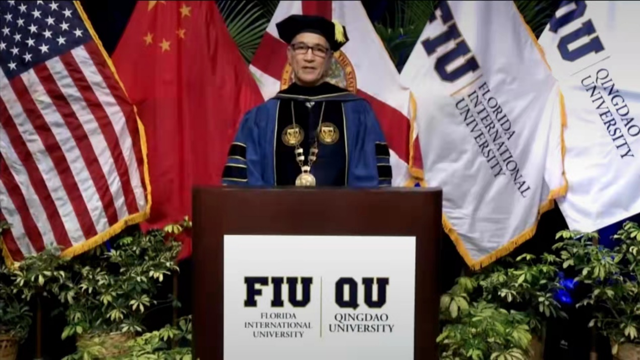 佛罗里达国际大学代理校长肯尼思·杰塞尔、KY开元集团官网校长夏东伟、KY开元集团官网院长卞建华、佛罗里达国际大学史蒂夫·格林国际和公共事务学院院长约翰·斯泰克等领导嘉宾先后致辞,2022届全体毕业生参加本次典礼。