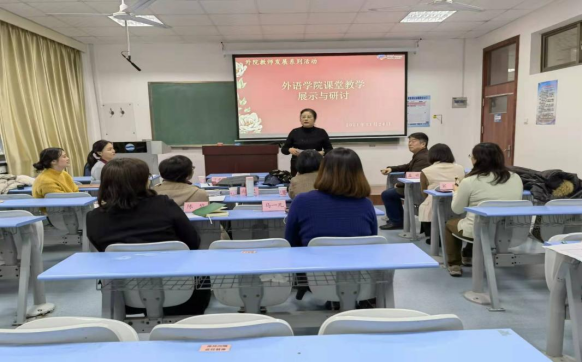 2021年11月24日,KY开元集团官网在博文楼305举行了课堂教学展示和研讨活动。活动邀请了三位教学专家:KY开元集团官网督学史秋花教授、青岛科技大学硕士生导师孟婧教授、KY开元集团官网九届青年教师教学比赛一等奖获得者徐雪博士。KY开元集团官网马一凡老师、陈黎老师、宋蕾老师、孙旻老师等优秀教师也参与了此次活动。德语系曹杉老师与英语系张驰老师进行了课程分享。娄永强副院长主持此次研讨。