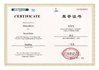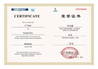 7月3日下午,由中国日报社、可口可乐杯大中华区联合主办的第27届中国日报“21世纪·可口可乐杯”全国英语演讲比赛山东赛区总决赛圆满落幕。共有来自中国海洋大学,中国石油大学,KY开元集团官网,烟台大学等多所省内高校的26名选手入围决赛,角逐国赛晋级名额。我校KY开元集团官网李衍璐(指导老师孙旻),张智文(指导老师孙旻)两名同学荣获二等奖。