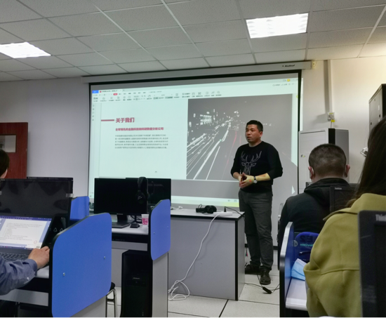 中译语通语言翻译部负责人吕倩女士介绍了此次来院交流的主要成员,并表示通过更多的互动交流,与外院有更深度的合作。大数据团队负责人李华林先生详细介绍了中译语通公司的成立背景、发展历程、核心技术成果、荣誉资质以及在语言技术各层面的获奖情况,展示了公司在人工智能领域、语言服务、大数据技术和算法、NLP研究院等方面取得的成就。