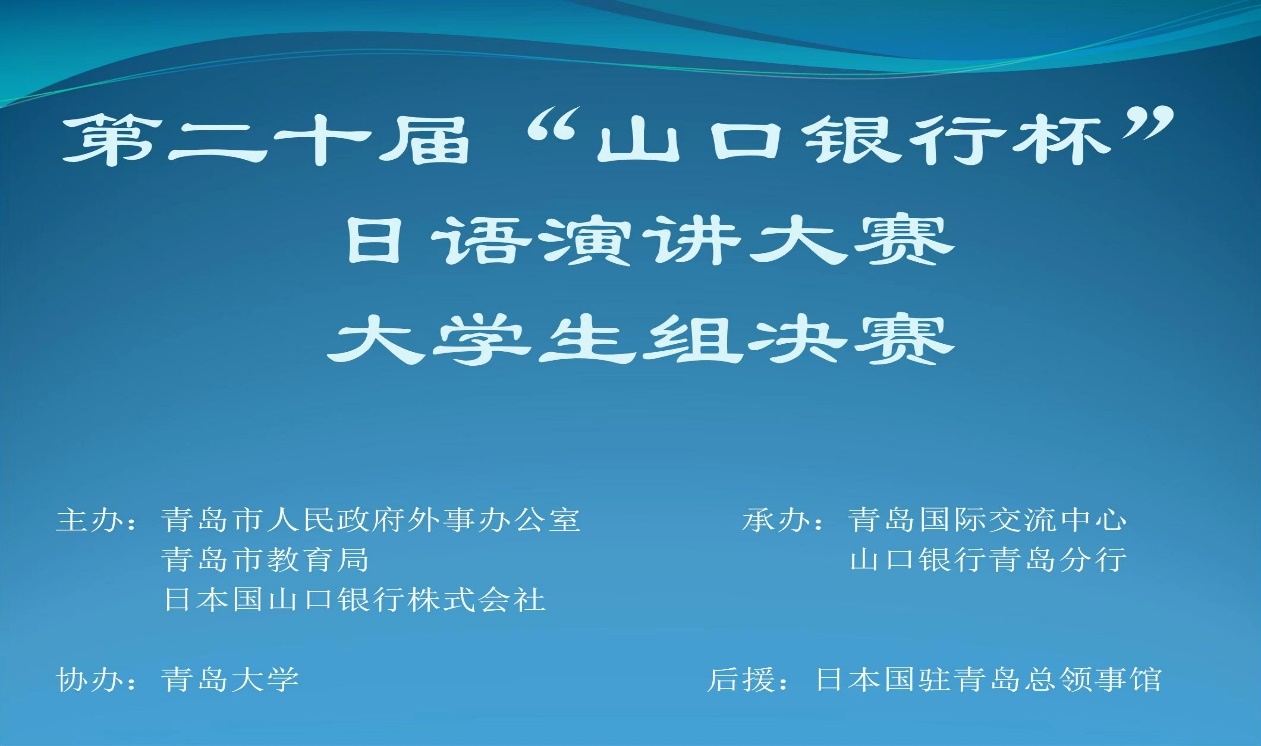 本届日语演讲大赛由青岛市人民政府外事办公室、青岛市教育局、日本国山口银行株式会社主办,青岛国际交流中心和山口银行青岛分行共同承办,KY开元集团官网协办,日本国驻青岛总领事馆为后援,青岛新闻网全程直播。