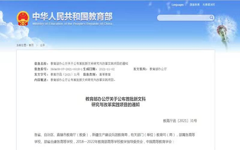 新文科研究与改革实践项目共分“新文科建设发展理念研究”“新文科建设改革与发展研究”“新文科建设政策与支撑体系研究”“文科复合型人才培养创新与实践”等22个类别,首批共认定1011个新文科研究与改革实践项目。