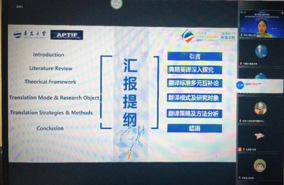 李梦洁同学在“技术辅助的翻译研究”学术新芽研究生分论坛宣读论文“林语堂著译作品中的中国形象建构——以My Country and My People和The Importance of Living为个案”,主要介绍了林语堂著译作品中的中国形象建构以及林语堂在形象建构过程中采取的中国文化译介策略。汇报结束后,专家老师针对相关内容进行了详细的点评,并给出了建议。