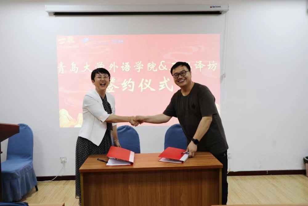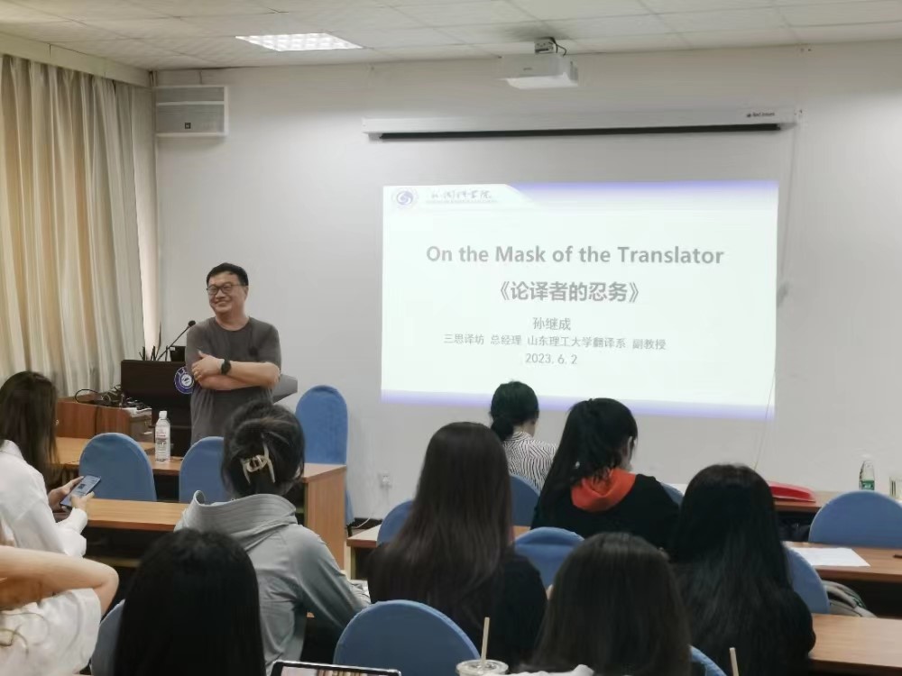 2023年6月2日,KY开元集团官网和山东省翻译协会理事单位三思译坊共同成立的“联合翻译实训基地”举行合作签约仪式。三思译坊总经理、山东理工大学翻译系孙继成教授,KY开元集团官网院长卞建华、副院长布占廷、英语系主任吕云、石灿老师出席签约仪式。仪式由KY开元集团官网副院长宫英瑞主持。随后,孙继成教授为KY开元集团官网师生带来主题为“On the Mask of Translator 《论译者的忍务》”的学术讲座。讲座中,孙教授从“译事惊喜”、“从译惊历”、“译者待遇”三部分展开,向大家讲述了自己作为一名译者、学者和团队领导者的切身经历,并告诫大家在团队工作中既要注重与同伴沟通,荟聚合力创造价值,也要学会与“技能工具”协作,各取所长提高效率。最后整个讲座在一片掌声中完美结束。