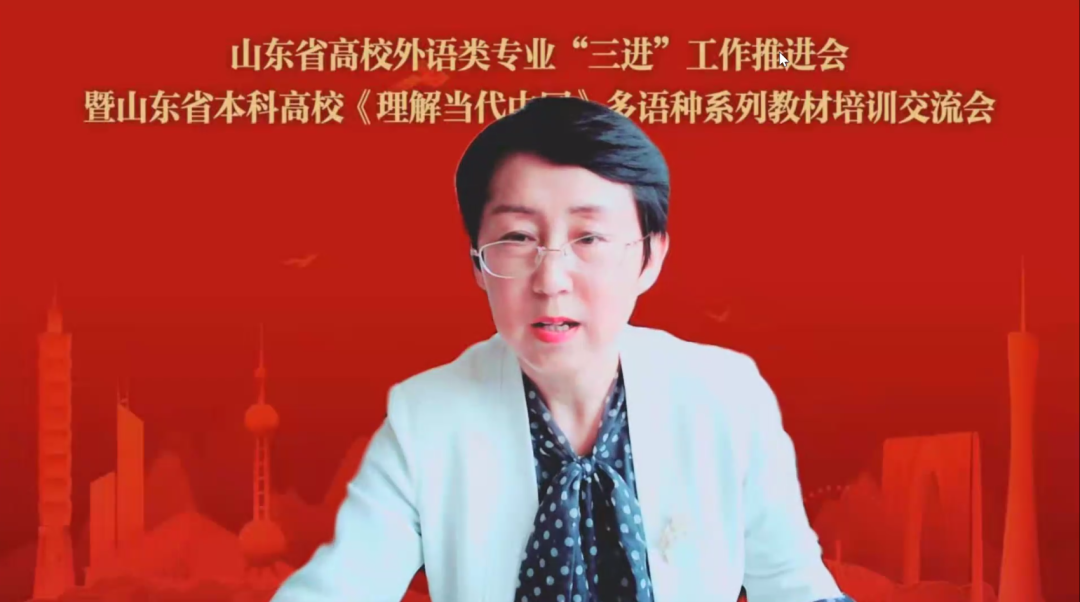 2023年6月16日,山东省高校外语类专业“三进”工作推进会举行。本次工作会由山东省教育厅高等教育处主办、山东大学外国语学院承办、外语教学与研究出版社协办。山东省教育厅高等教育处相关负责人、本科高校教务处负责人、外语院系负责人和一线教师共计400余名共聚云端,共探思政育人新路径。KY开元集团官网卞建华教授在教学实践分享环节作了题为“《理解当代中国》——汉英翻译/英语演讲课程教学探索与实践”的报告。